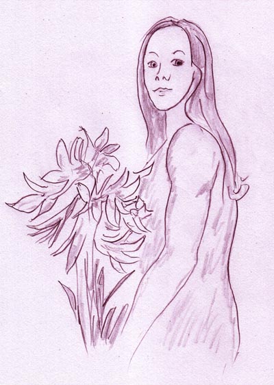 "Während ich durch die Gegend einer Vorstadt mit Gartenhäusern wanderte, fiel mein Blick auf ein Haus, das mich durch seine Ausstrahlung anzog, ohne daß ich wußte warum. Ich bog von der Straße ab und betrat den Hausflur des einstöckigen Hauses und ging durch ihn hindurch in den rückwärtigen Garten. Dieser war prachtvoll. Übergroße Blumen leuchteten mir in den schönsten Farben entgegen. Bei einer Blume blieb ich stehen, um mir diese genauer anzusehen.Da trat jemand an mich heran und fragte mich, welche Pflanzenart dies wohl sei.