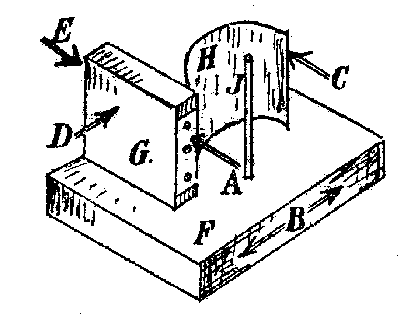 "Durch Verschieben von Pappscheiben W kann man die einzelnen Apparatenhälften von den Pulsstößen treffen lassen oder sie davor schützen."