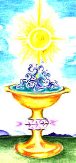 Die Hände liegen zu einer Schale geformt auf dem Schoß. Nun stellen wir uns vor, daß in uns das Licht einen Arm entlang, von diesem durch die Brust und von dort über den nächsten Arm zurück zur Ausgangsstellung fließt. All dies machen wir im Einklang mit dem Atemrhytmus.