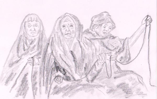 In old myths very often the three Norns are mentioned - Urd, Werdandi und Skuld, spinning the cord of life, measuring it and cutting it.