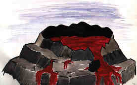 1977"Die Menschen fliehen aus der Großstadt. Irgendwo in der Steeiermark läuft die Straße knapp an einem frisch ausgebrochenem Vulkan vorbei. Er spukt Feuer und Lava fließt herab. Wir riskieren noch vorbei zu kommen und haben Glück. Hinter uns wird die Straße von Lava verschüttet." |