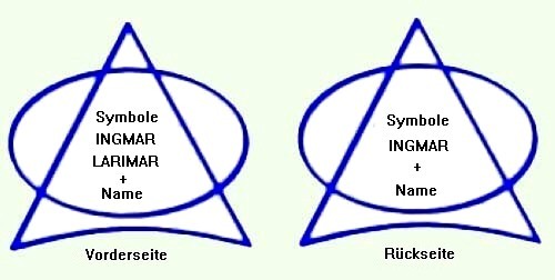 Verwendet man in einer Fern-Heilung die Symbole aus beiden Systemen, so sollten die INGMAR-Symbole stets beidseitig in einer Ellipse, die LARIMAR-Symbole aber nur auf einer Seite gezeichnet werden. Als Informations-Träger verwendet man wieder Papier, Karton, Kork u.ä. .