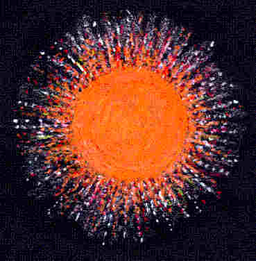 In der Früh, während der Meditation sah ich folgendes Bild: Von einem größeren kreisrunden Zentrum, welches orangerot leuchtete, gingen kleine, fast kornförmige Teile radial nach außen zu weg.