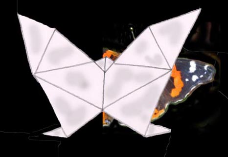 "Ich sah im Traum einen sehr schönen Schmetterling, nahm meinen Fotoapparat und versuchte ein schönes Foto von ihm zu machen. Plötzlich sah ich jedoch statt dem Schmetterling einen Schmetterling als Origami in Papier gefaltet vor mir. Auf dem Papier der Origamifaltung war ein Teil der Umgebung in Schwarz/Weiß abgebildet. Der Schmetterling, den ich fotografieren wollte, lag zerquetscht in dem gefalteten Papier. Einzig ein Teil des Flügels sah noch heraus."
