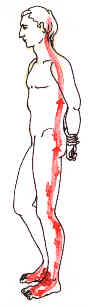 Nun beginnt die Visualisation eines Lichtfadens. Dieser Lichtfaden verläuft durch die Wirbelsäule, geht aber in beiden Richtungen über den Körper hinaus. Seine Farbe ist rotorange, die anfängliche Dicke ist bei mir ungefähr 4 mm. Wenn auch von Lichtfaden gesprochen wurde, so hat das Ganze mehr die Erscheinung eines Laserstrahles.