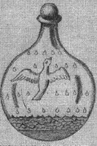 Die Bewusstwerdung der dunklen Seite unserer Persönlichkeit durch ausserkörperliche Erfahrung ist analog einer Stufe in der Alchemie. Man nennt sie in der hermetischen Kunst Separatio (Trennung) oder Distractio (14). Die chymische Operation Separatio wird in vielen alchemistischen Werken als ein verschlossenes Glasgefäss dargestellt, in der die Seele als Vogel aufwärts fliegt. Die vier Elemente sind ebenfalls symbolisch angedeutet.