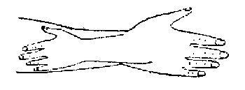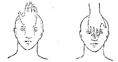 Aus H. Durville: "Die Physik des Animal-Magnetismus", Seite 287:"Hält man z.B. dem Sensitiven die rechte Hand in der Stellung wie sie Fig. 34 zeigt, an die Stirne, also mit den Fingerspitzen nach oben, dann erfolgt Abstoßung und Einschläferung; hält man ihm aber dieselbe Hand in der Stellung von Fig. 35, nämlich mit den Fingerspitzen nach unten, so wird der Sensitive angezogen und paralysiert."