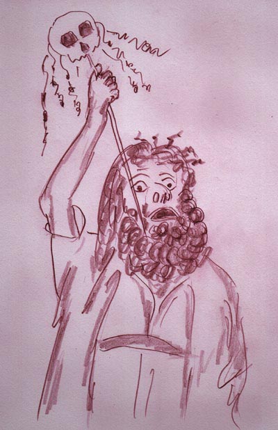 Als dies gelungen war, stürzten sich alle auf ihn, so daß der junge Mensch Fersengeld gab und auf mich zuzulaufen begann. In diesem Augenblick entstand ein gellendes Geschrei. Man schickte sich an, den Fliehenden wieder einzufangen und ihn wegen Betrugs zu züchtigen, da der Beutel statt des Geldes nur Steine enthielt. Es war gleich dem Feengold im Märchen verwandelt worden, jedoch nicht in welke Blätter, sondern in harte Steine.