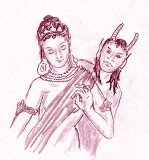 Der Wald lichtete sich und auf einer kleinen Wiese stand ein indischer Tempel, einfach gebaut und ohne die vielen bunten Figuren außen an den Wänden, wie sonst bei indischen Tempeln üblich. Einsam stand der Tempel da, weit und breit keine Häuser. Carol trat ein. Innen herrschte Dämmerlicht. Es war gerade noch zu erkennen, dass auf dem Altar die Statue einer indischen Göttin stand. Carol näherte sich. Auf einem kleinen Tischchen an der Seite fand er Kerzen und Zünder. Er entzündete eine Kerze. Das Licht flammte hell empor und die Statue bekam Farbe. Sie warf einen Schatten an die Wand, der etwas dunkler war als die sonstigen Dämmerschatten des Tempels. Als er zur Göttin hinblickte, begann sie sich zu beleben. Zunächst waren es nur die Augen, die glitzerten, dann belebte sich ihr Gesicht und sie lächelte. Tränen kamen Carol. Er weinte vor Freude, es war Tara, die zu ihm blickte. Auch der Schatten hinter ihr begann sich zu beleben und zu seinem Erstaunen sah er in ihm einen weiblichen Teufel mit Hörnern. Die Teufelin machte keinen bösartigen Eindruck, sondern schien Tara zu begleiten, ganz selbstverständlich und natürlich, so wie auch unser Schatten uns begleitet, wenn wir nächtens vor ein Licht treten.