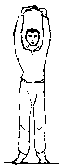 Grundstellung: Einatmend führen wir unsere Arme seitlich über unseren Kopf, so daß die Hände einander berühren. Nun lauschen wir in den Körper hinein; dabei werden die Hände in einer leichten Bewegung nach oben gestemmt. Ausatmend senken sich unsere Arme - zurück in die Ausgangsstellung. |