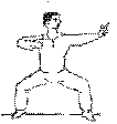 Reiterstellung. Hände ruhen in der Höhe des Anahata. Langsam ausatmen. Einatmend wird der rechte Zeigefinger erhoben und die Hand nach vorne und außen gedreht, bis der Arm gestreckt ist - der Handrücken weist zum Gesicht. Der Blick folgt der sich streckenden Hand. Die andere Hand führt die Gegenbewegung aus - die Finger gestreckt, so als wollten sie die Sehne des Bogens erfassen, dabei zieht der Ellbogen den gestreckten Unterarm zur Seite. Nun lauschen wir in den Körper hinein - den Fluß des Qi beachtend. Ausatmend lassen wir unseren Atem plötzlich los, der zur Brust fallen sollte - "gehauchte" Technik - es folgt die Rückführung in die Ausgangsposition. |