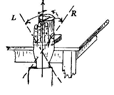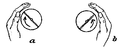 2) Die Umdrehungen erfolgen in zentrifugaler Richtung von den Fingern weg (rechte Hand gegen den Uhrzeigersinn, linke Hand im Uhrzeigersinn (siehe nachfolgendes Bild).