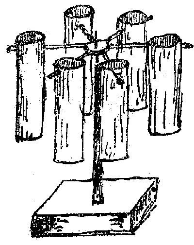 Drei weitere Anordnungen, die ich hier nicht näher beschreiben will und die zum Feststellen des Einflusses von pulsierenden Luftstößen auf den Zylinder dienten. Bei optimaler Versuchsanordnung drehte sich der Zylinder.