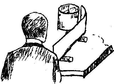 Es wurde ein Kartonstreifen als Leiter verwendet und unter die Achsel geklemmt, bei herabhängenden Armen. Die Trommel rotierte.