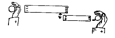 Bringt man in die Nähe der größeren Röhre die linke Hand und in die Nähe der kleineren Röhre die rechte Hand, so stoßen die Röhren einander ab.