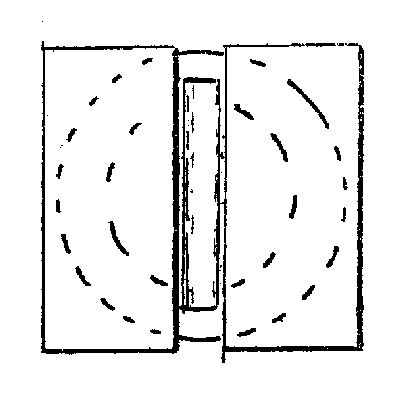 Wird der Schirm über die Medianebene (Mittelachse d. Körpers) geschoben, läßt die Drehkraft nach. Seitenstrahlen sind fast ohne Wirkung. Reflektoren (S) erhöhen die Wirkung.
