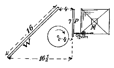 In der nächsten Anornung versucht Hofmann eine Apparatur zu konstruieren, welche die Messung der Stärke der Kraft vereinfachen und schneller feststellbar machen möge: