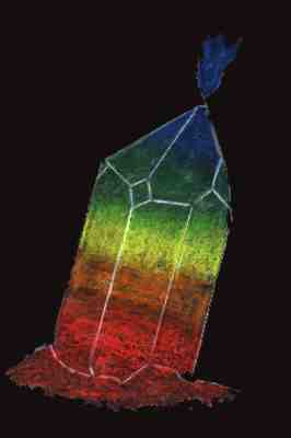 Aus: Odisch-magnetische Briefe, S.11, Baumgartner Verl., Warpke Billerbeck, Hann., 1953 "Verschaffen Sie sich einmal einen natürlichen Kristall, so groß, wie Sie ihn bekommen können, etwa einen Gipsspat von zwei Spannen Länge, einen Schwerspat oder einen fußlangen Gotthardter Bergkristall. Legen Sie ihn horizontal über eine Tischdecke oder Stuhllehne, so daß die beiden Enden frei darüber hervorstehen, und führen Sie nun eine sensitive Person davor mit der Weisung, die linke innere Handfläche den Kristallenden nacheinander bis auf drei, vier oder sechs Zoll zu nähern. Es wird keine 10 Sekunden anstehen und der Sensitive wird Ihnen schon sagen, daß aus dem Ende der Zuspitzung ein feiner kühler Hauch der Hand entgegenwehe, aus dem anderen Ende, der unteren Bruchfläche, aber, an welcher der Kristall angewachsen war, etwas Lauliches der Hand zugehe." (Nach Reichenbach: blaupolar = kühl, rot(genauer orange)polar = lauwidrig) |
