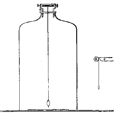 (aus: Freiherr Dr. Carl v. Reichenbach, "Die odische Lohe und einige Bewegungserscheinungen", S.46, Altmann Verl., Leipzig, 1909)Nach Hause zurückgekehrt machte sich Reichenbach daran ein eben solches Gerät herzustellen und mit seinen Sensitiven zu prüfen. Er verwendete Glasglocken, paßte in die Halsöffnung eine hölzerne Hülse, durch die ein Holzstab gesteckt wurde mit einem aufgerollten Seidenfaden, an dessen Ende ein nußgroßes Pendel hing.