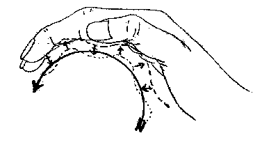 "Der Puls bewirkt eine sehr schwache, von der Handwurzel zur Fingerspitze voranschreitende Wellenbewegung der Haut."